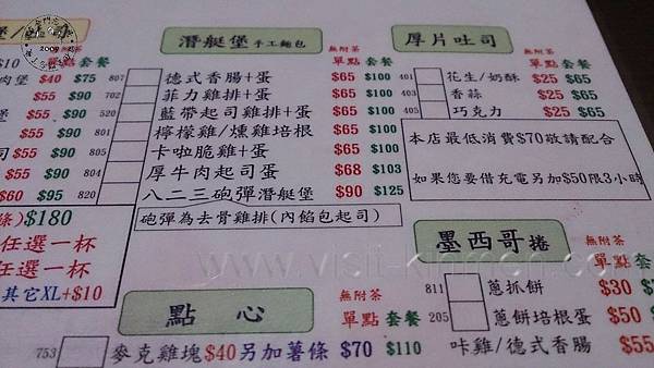 坐下點餐,果不其然,店內布置、點餐方式、菜色設計等,都很符合阿兵哥用餐的風格。菜單中一個“八二三砲彈潛艇堡”直接占據了我們的目光,當然要點來嚐看看。另外一個就點了當兵時經常點的簡餐配飲料,回味一下邊看電視邊用餐的島休時光。